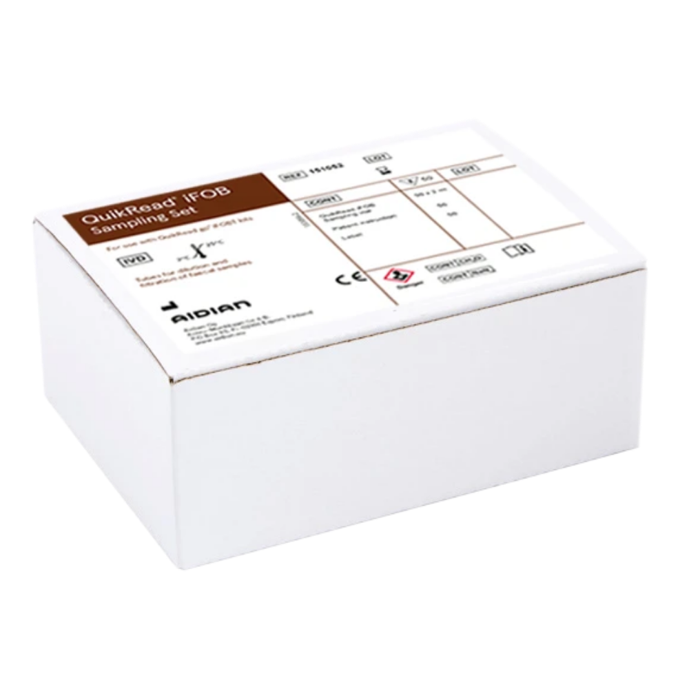 Set bestehen aus Röhrchen und Stuhlfänger zur Probenentnahme für den QuikRead go iFOBT - Test.